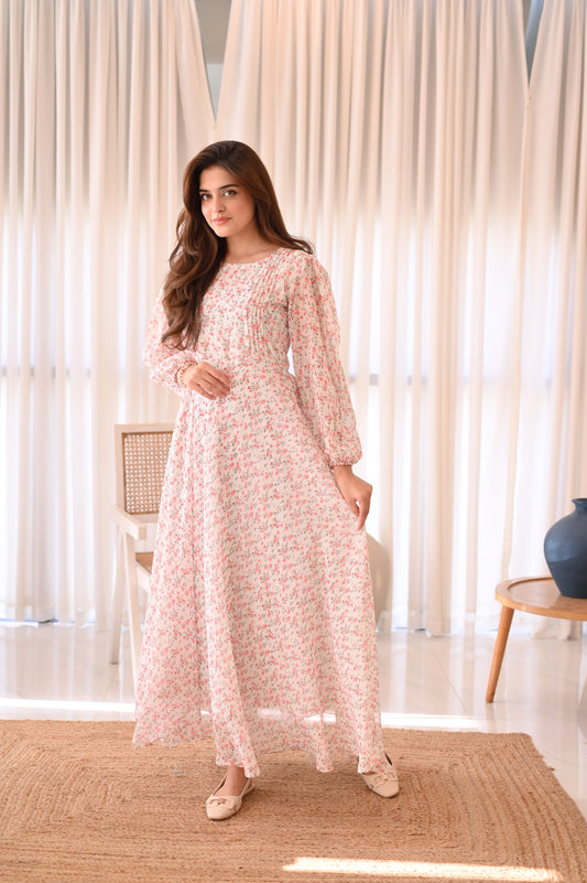 Liliosa Green Floral Long Dress by Silk and Saffron