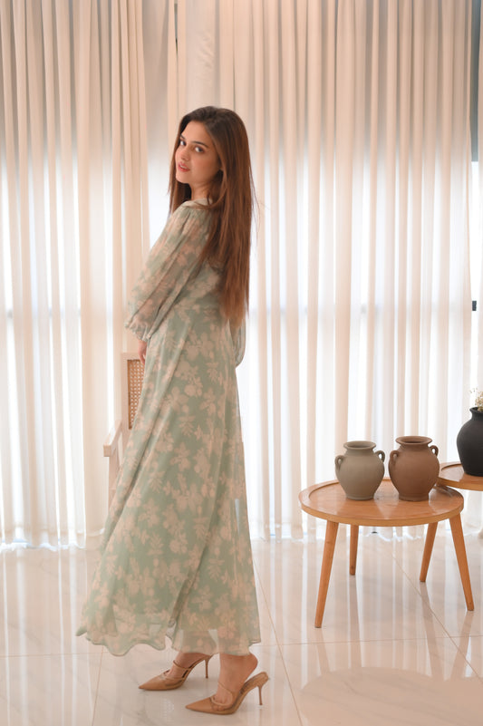 Liliosa Green Floral Long Dress by Silk and Saffron