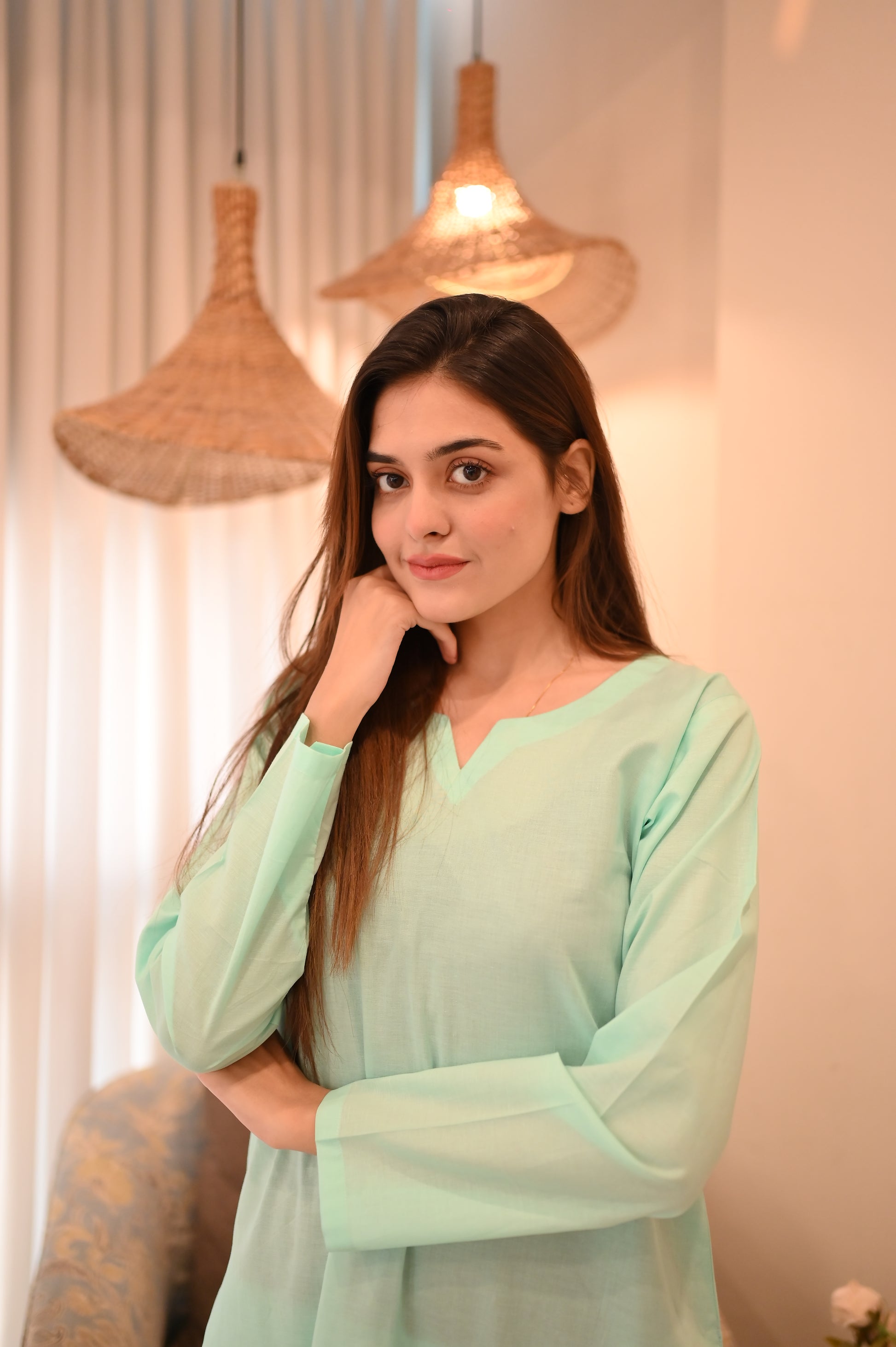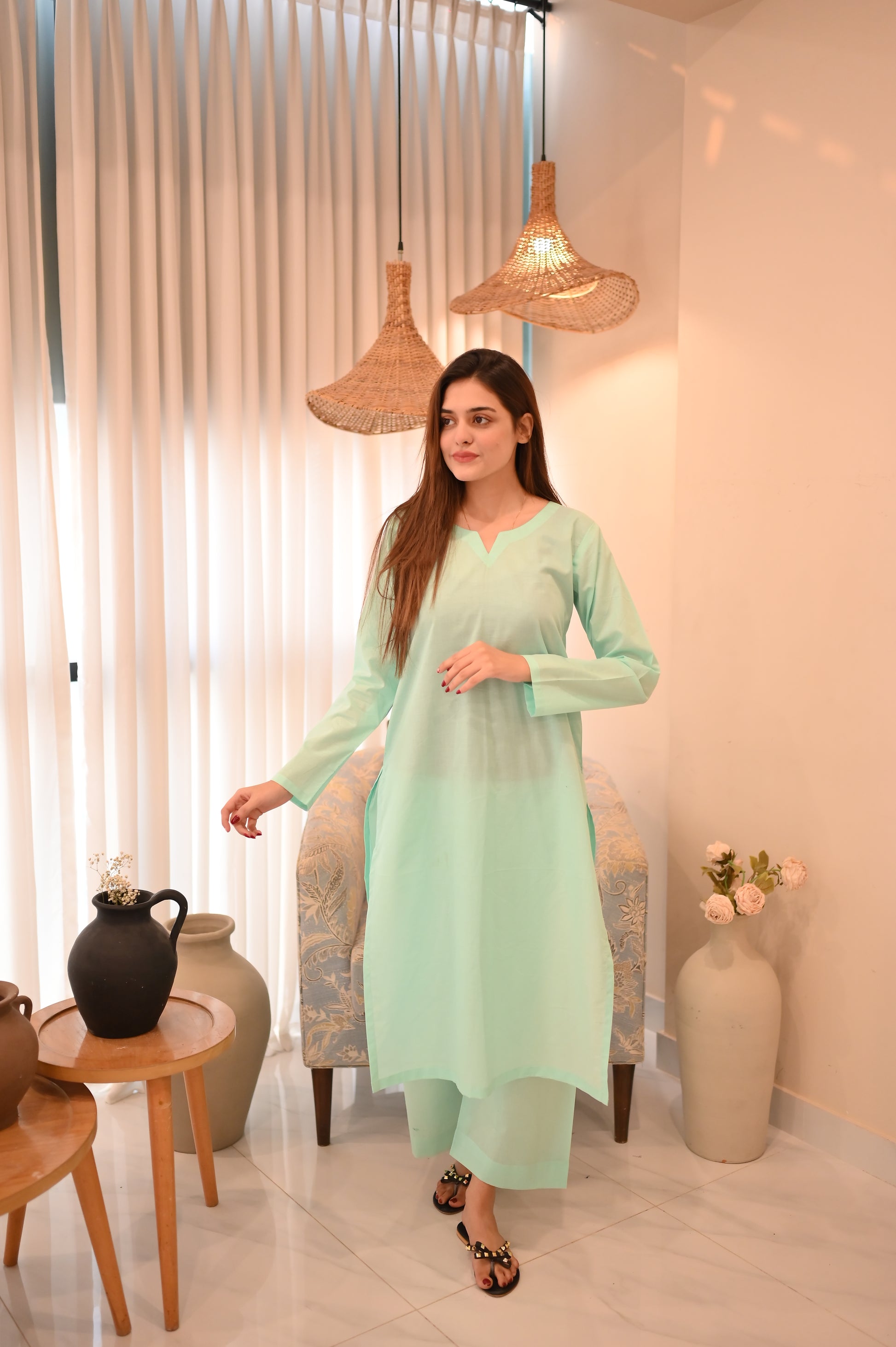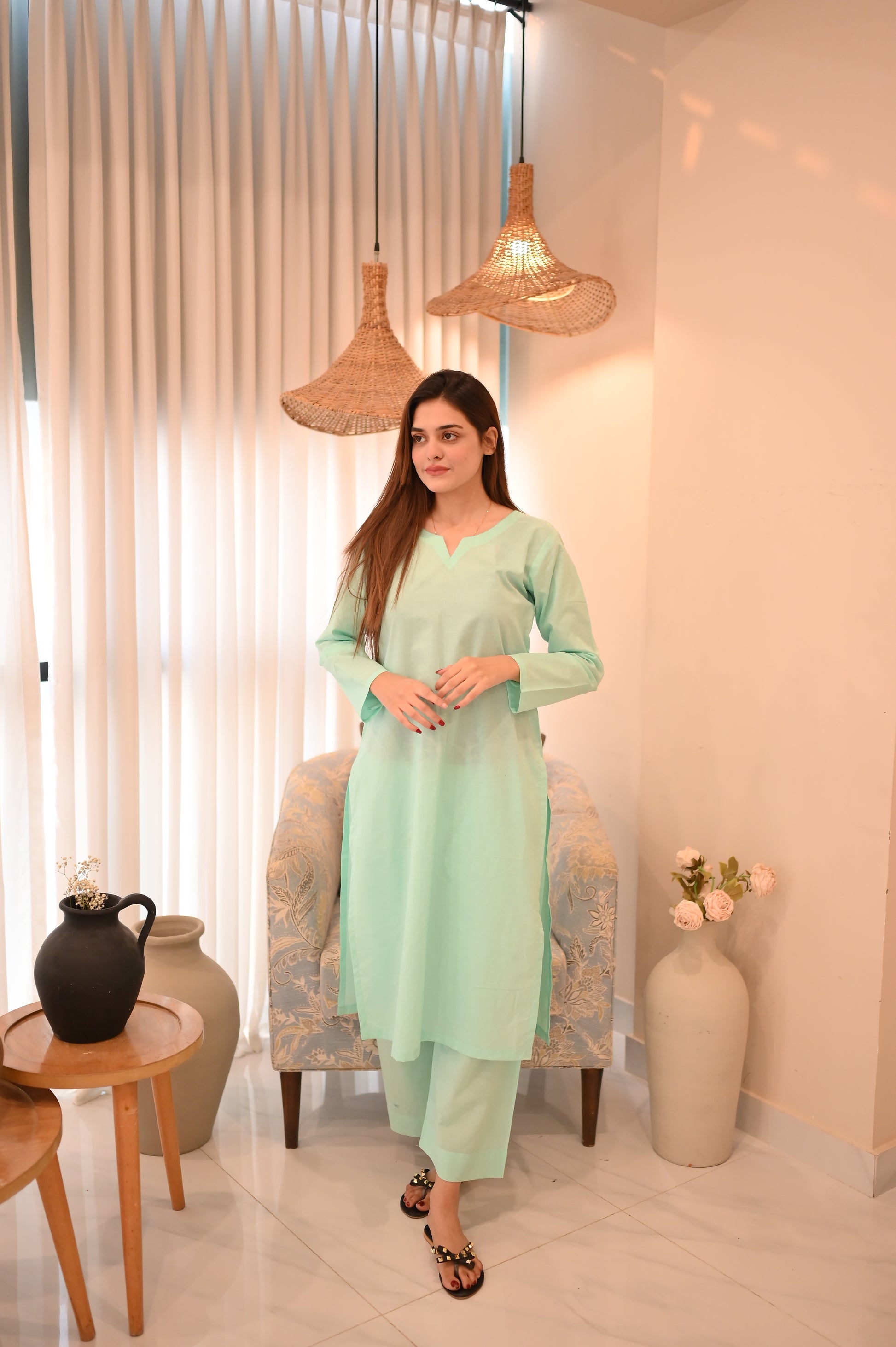 Add a touch of grace and comfort to your wardrobe with this must-have Aqua Co-Ord Set!