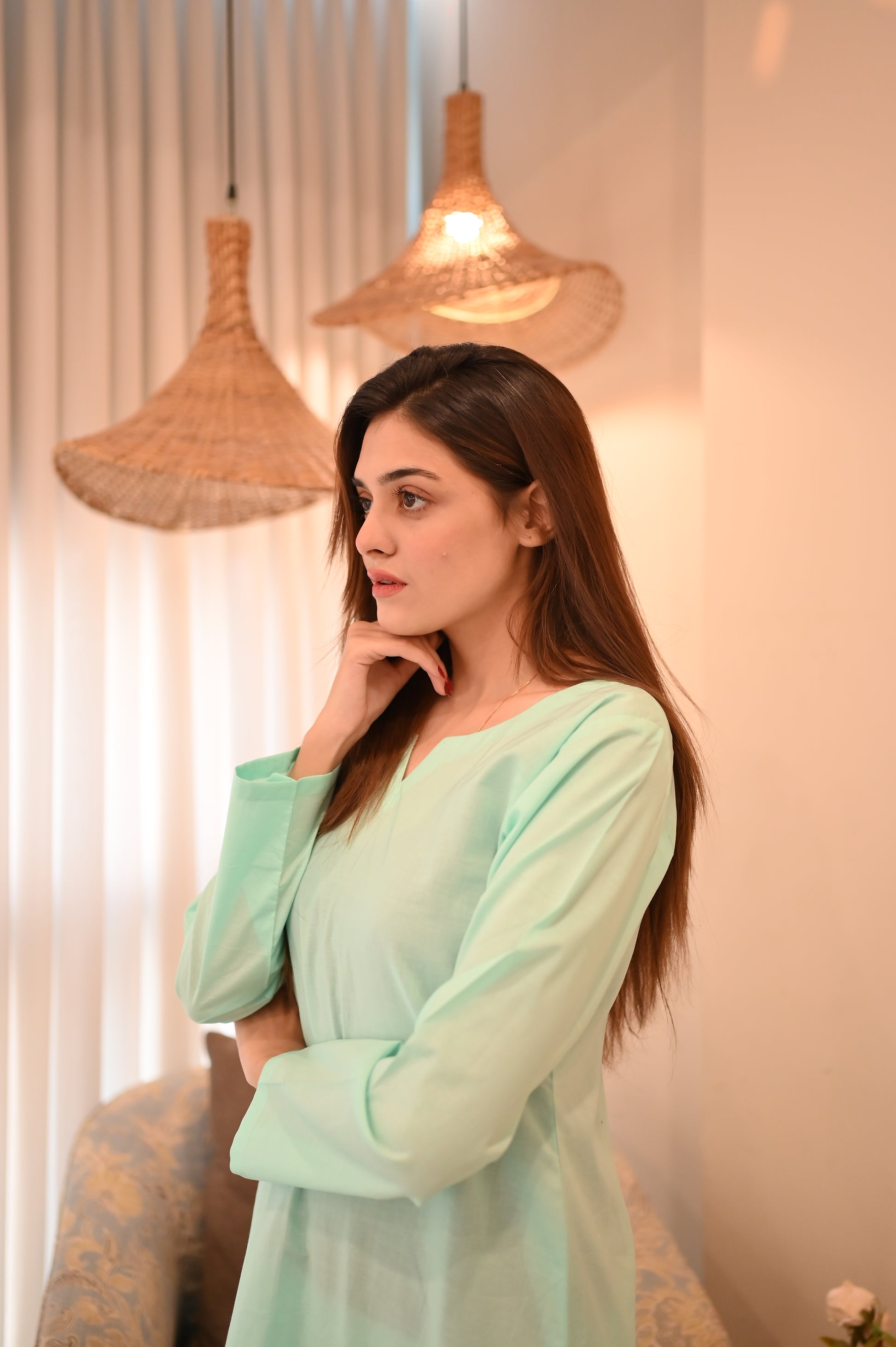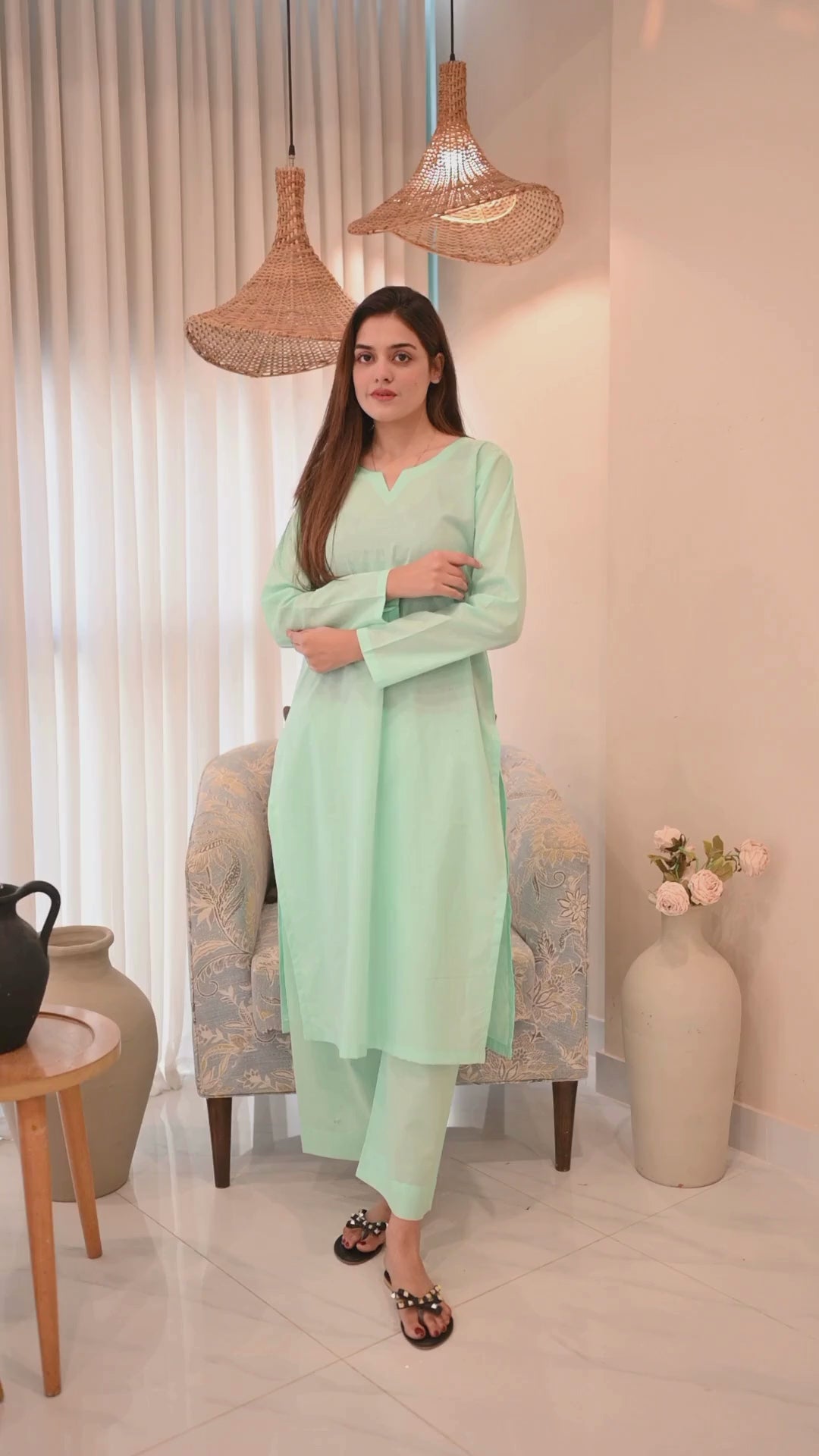 - Top: A beautifully crafted long kurta with a soft round neckline and straight sleeves. The clean lines and minimalistic design provide a timeless look.