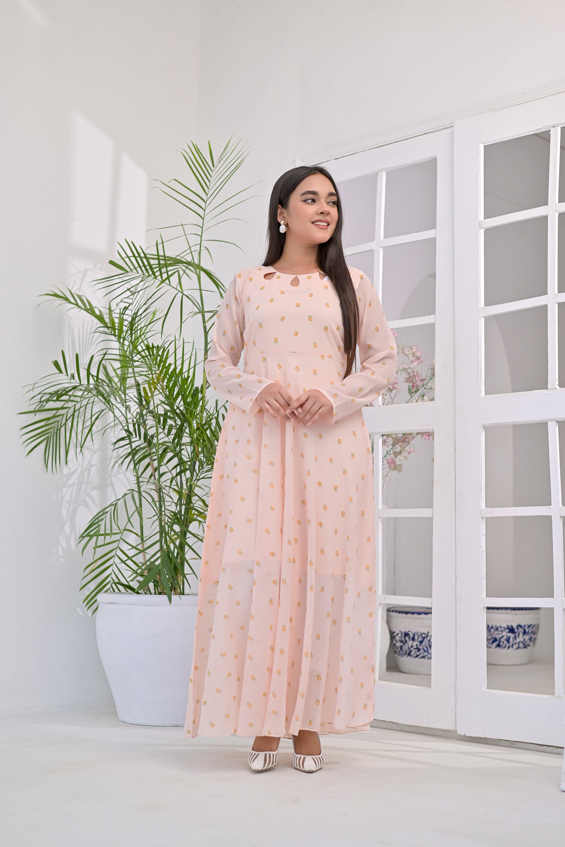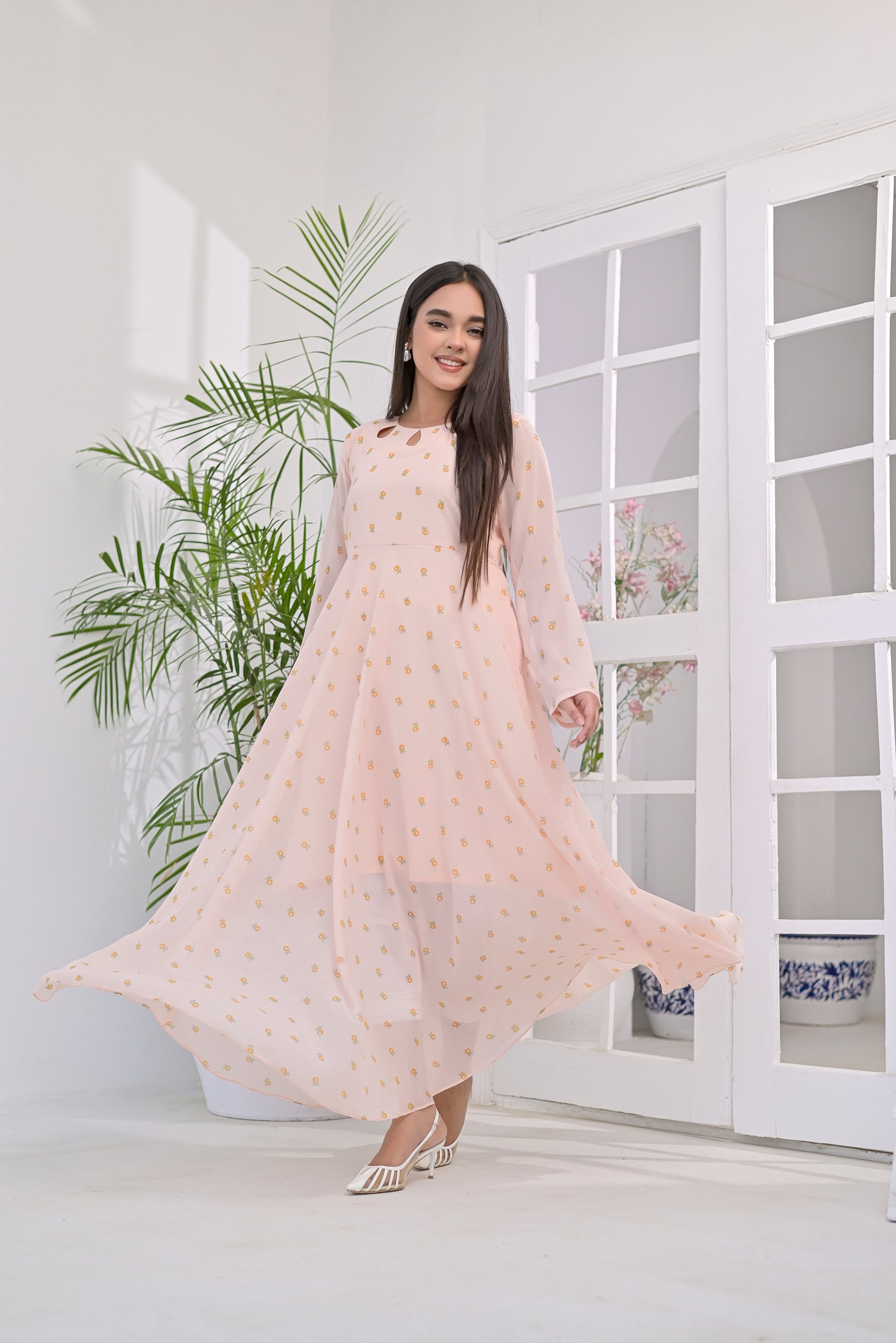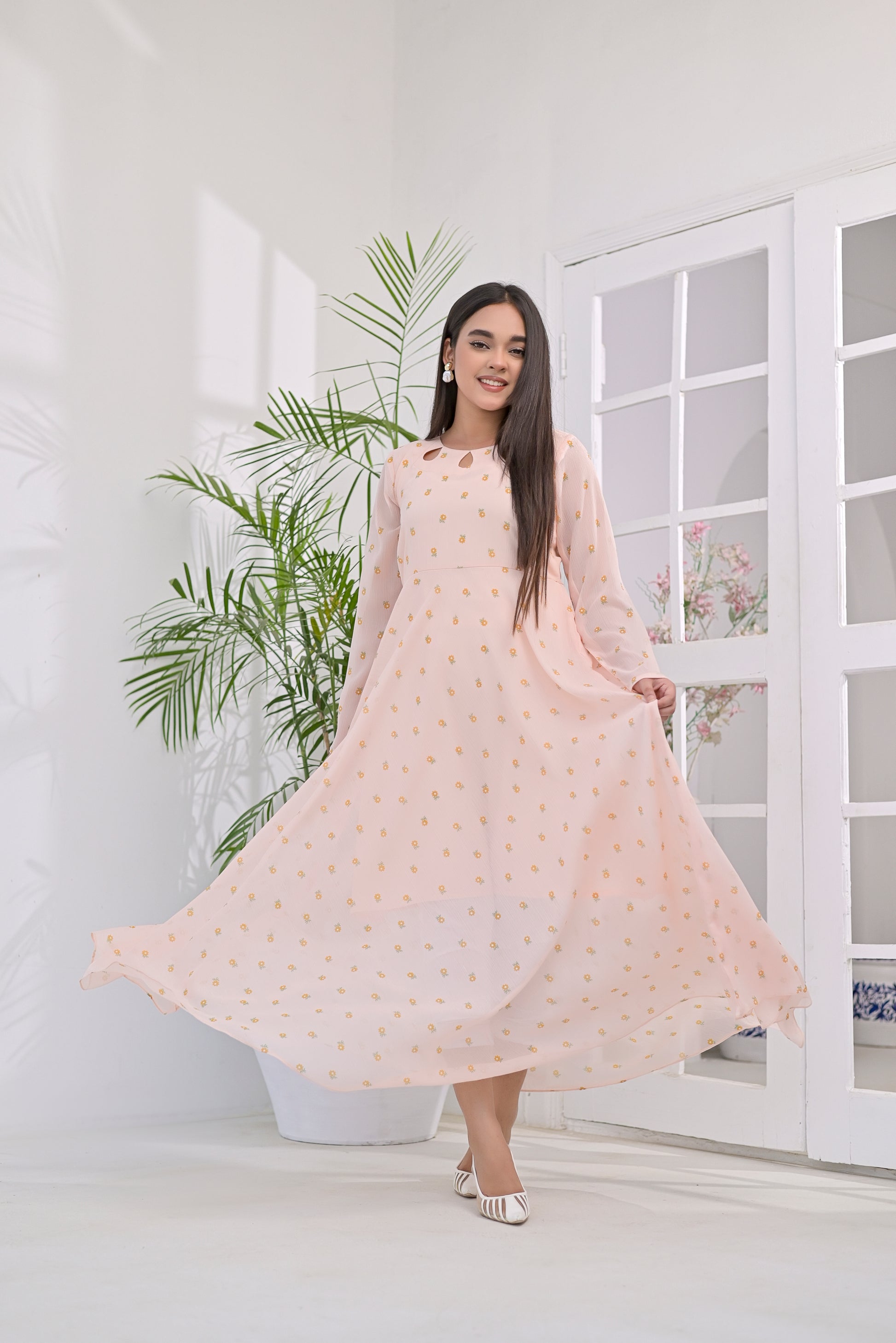 - Design: A flowy, ethereal maxi dress adorned with delicate embroidery, exuding timeless grace and elegance.