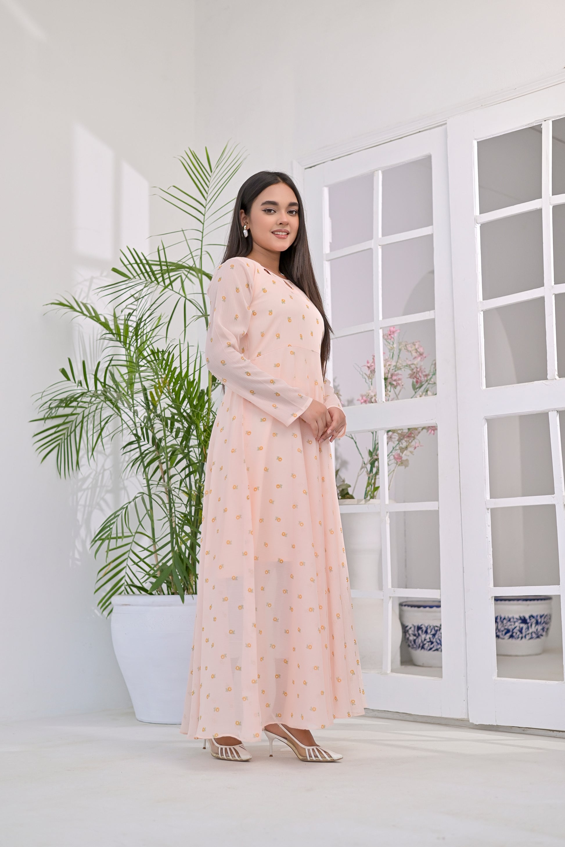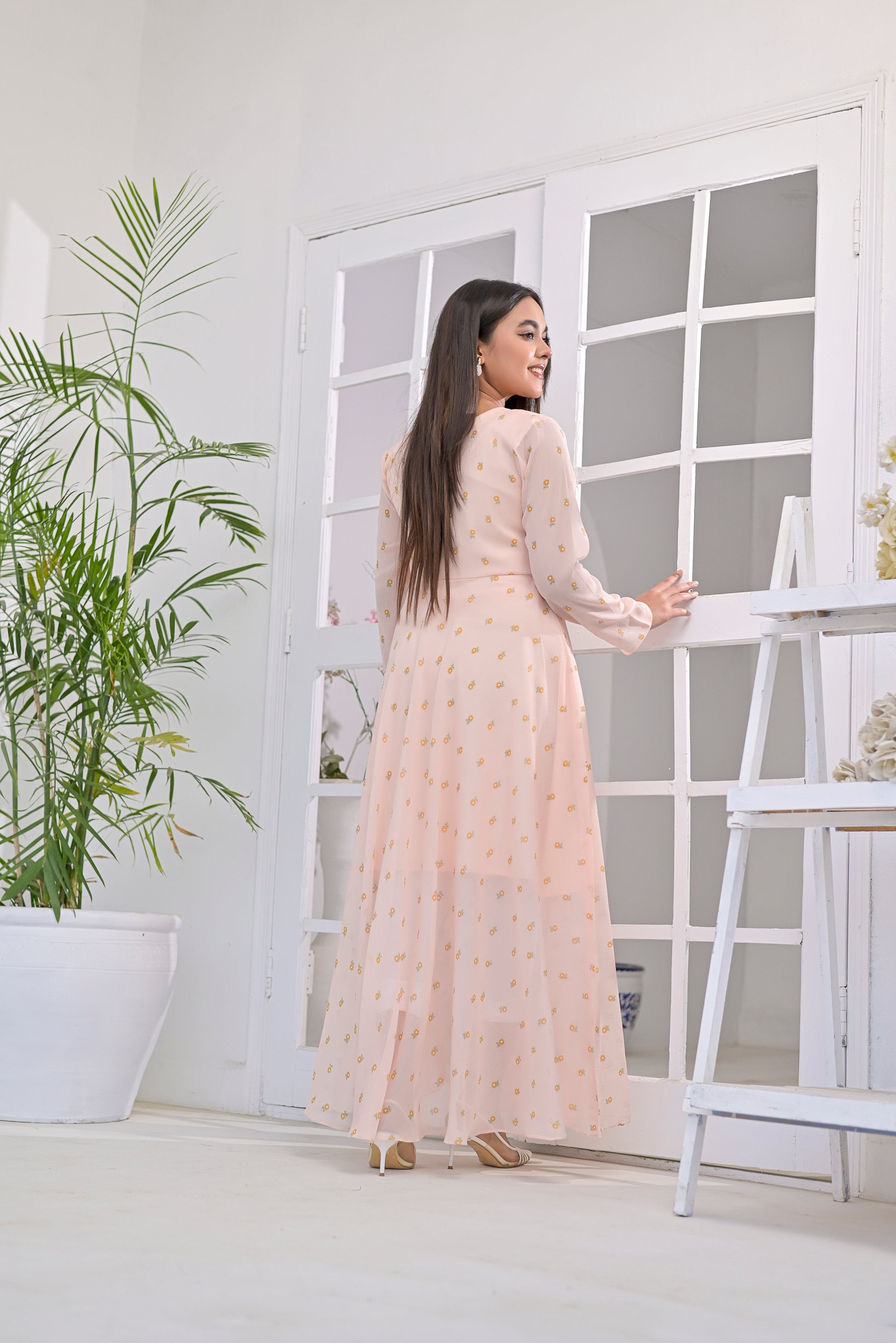 - Product Color: A soft pastel peach base beautifully embroidered with golden floral motifs, enhancing its dreamy and feminine appeal.
