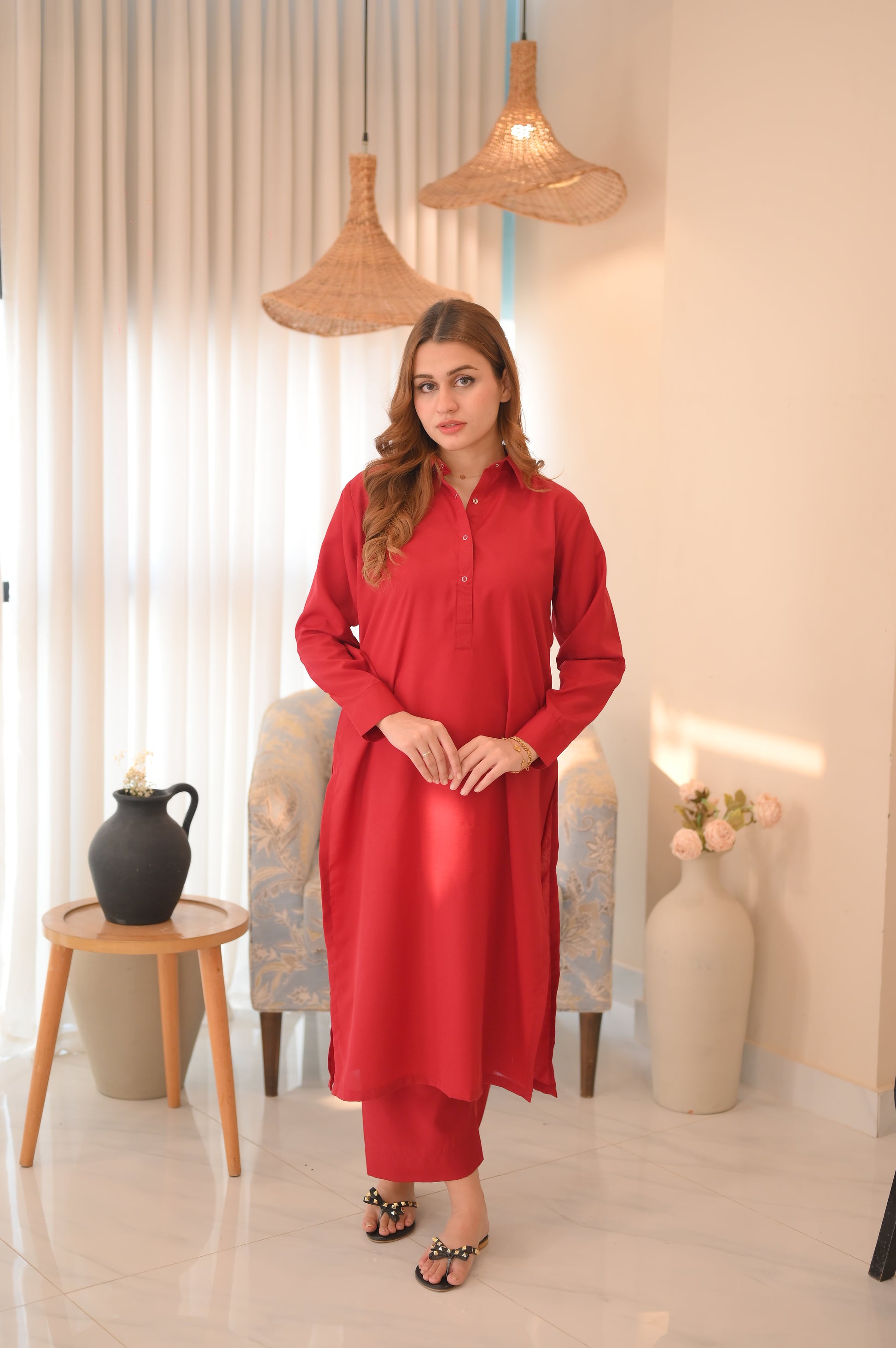Transform your wardrobe with the fiery elegance of the Ember Red Co-Ord Set, where fashion meets comfort in the most effortless way!