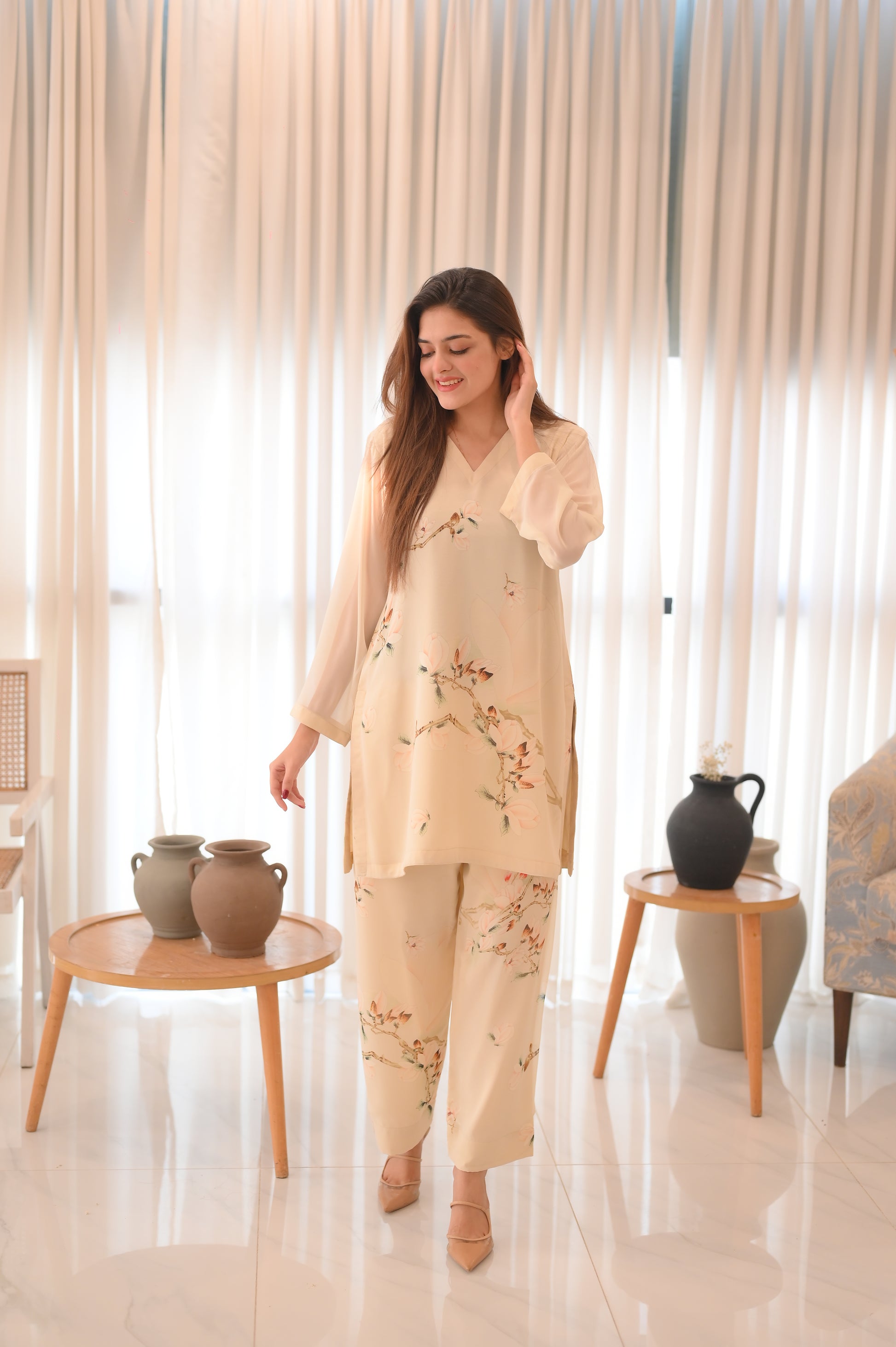 Step into the world of timeless beauty and grace with the Floral Bliss Co-Ord Set, your go-to outfit for a chic, effortless style.