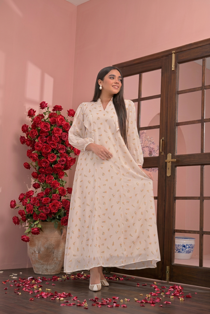 - Product Color: A dreamy ivory base adorned with subtle golden floral motifs, perfect for an effortlessly graceful style.
