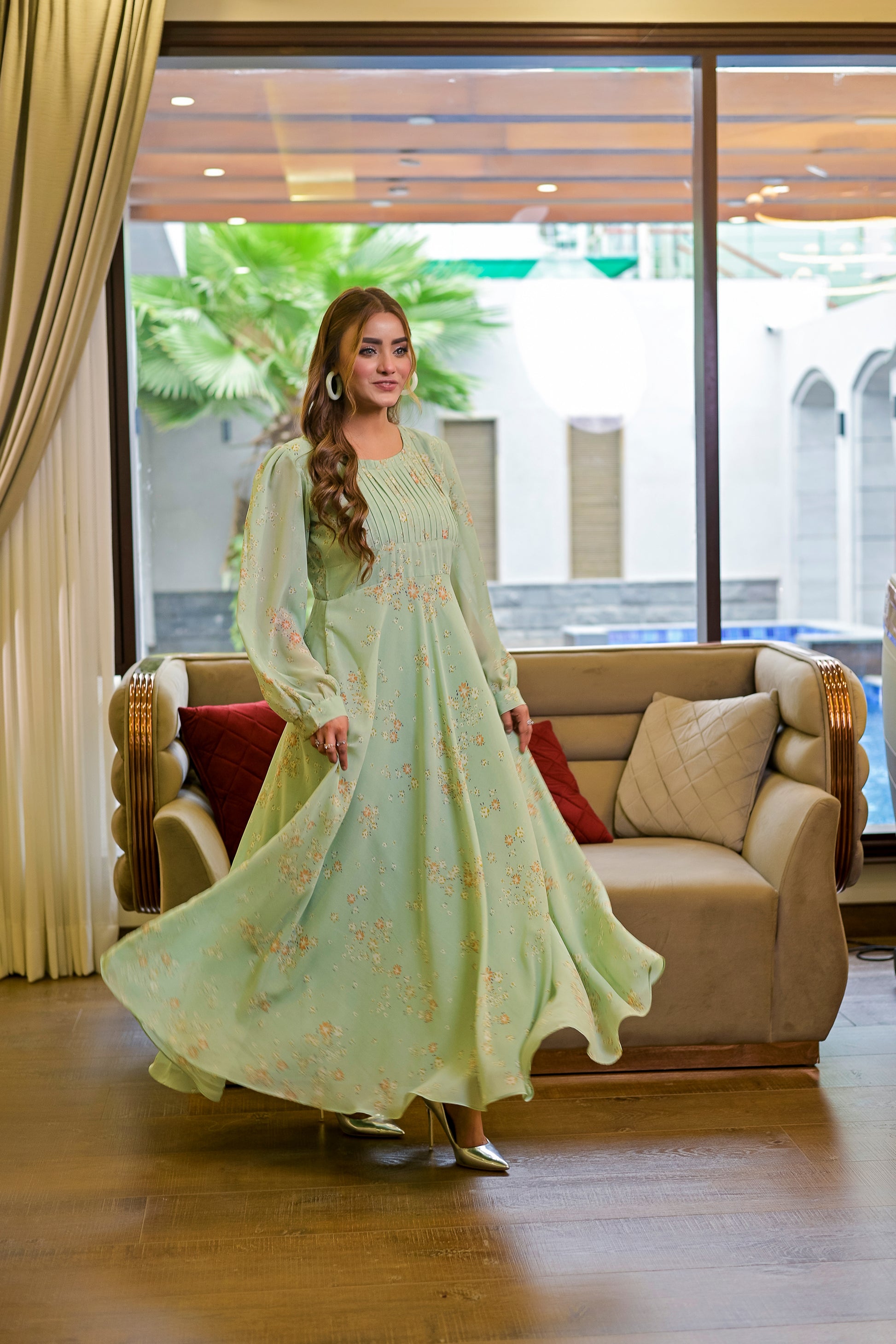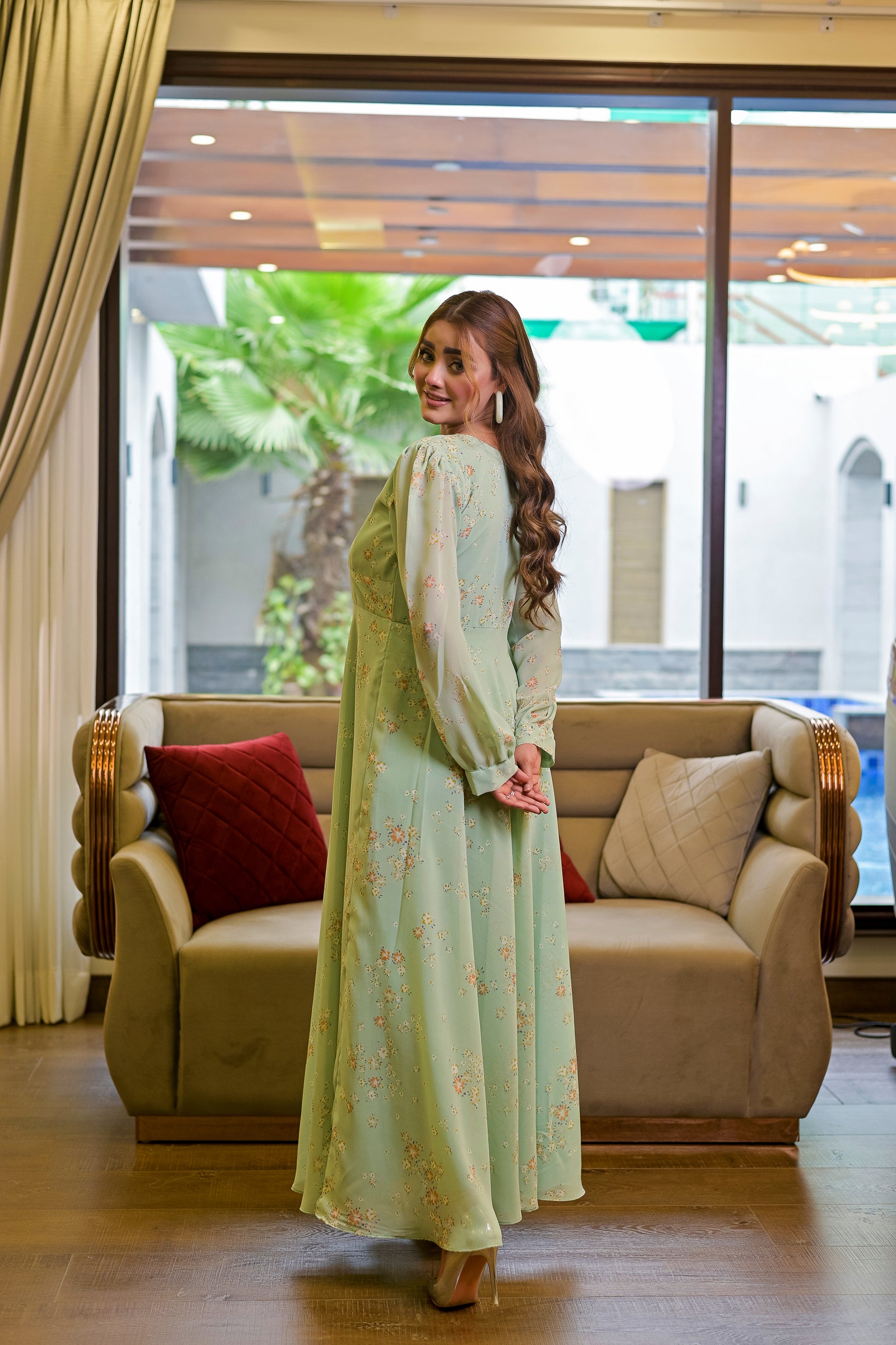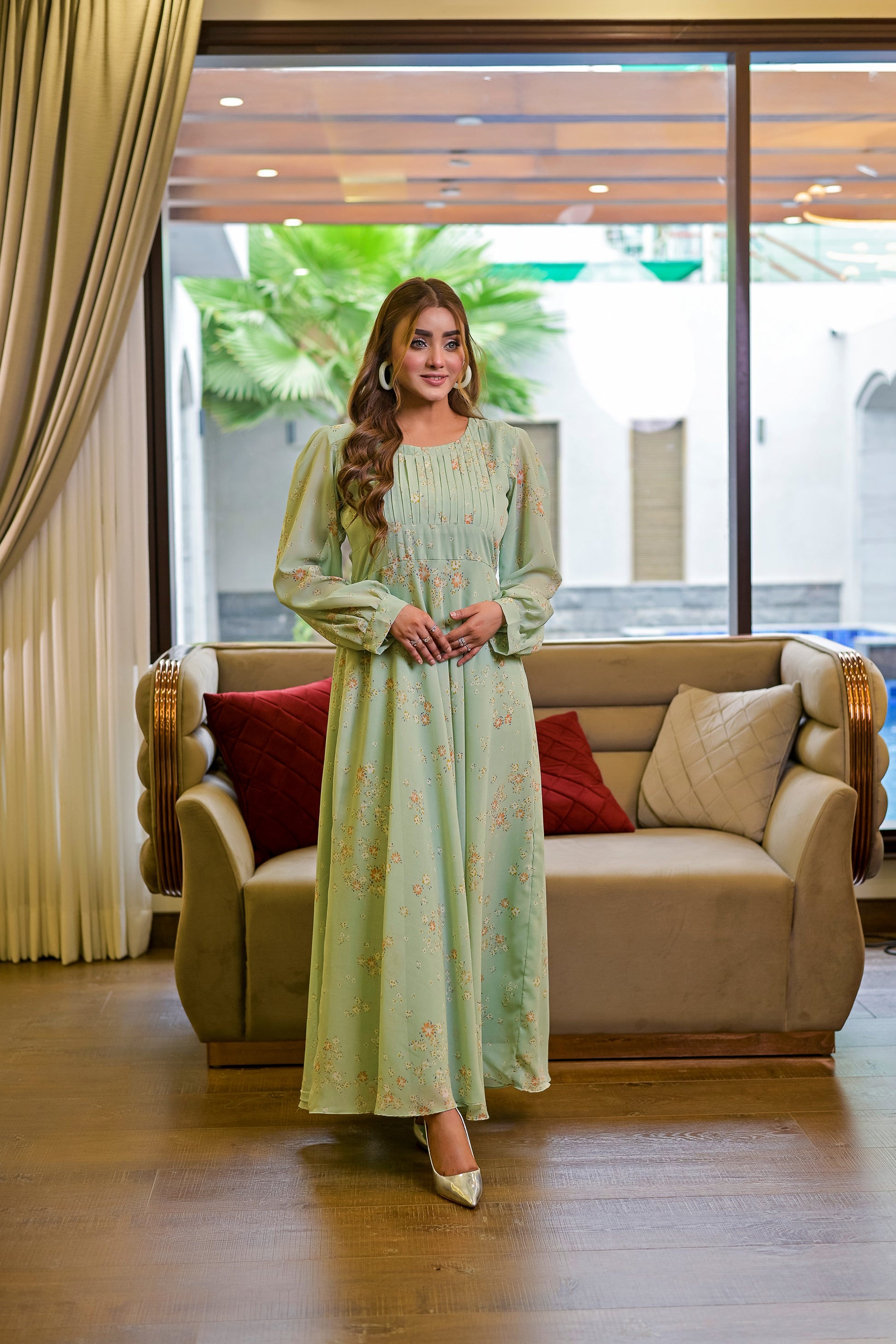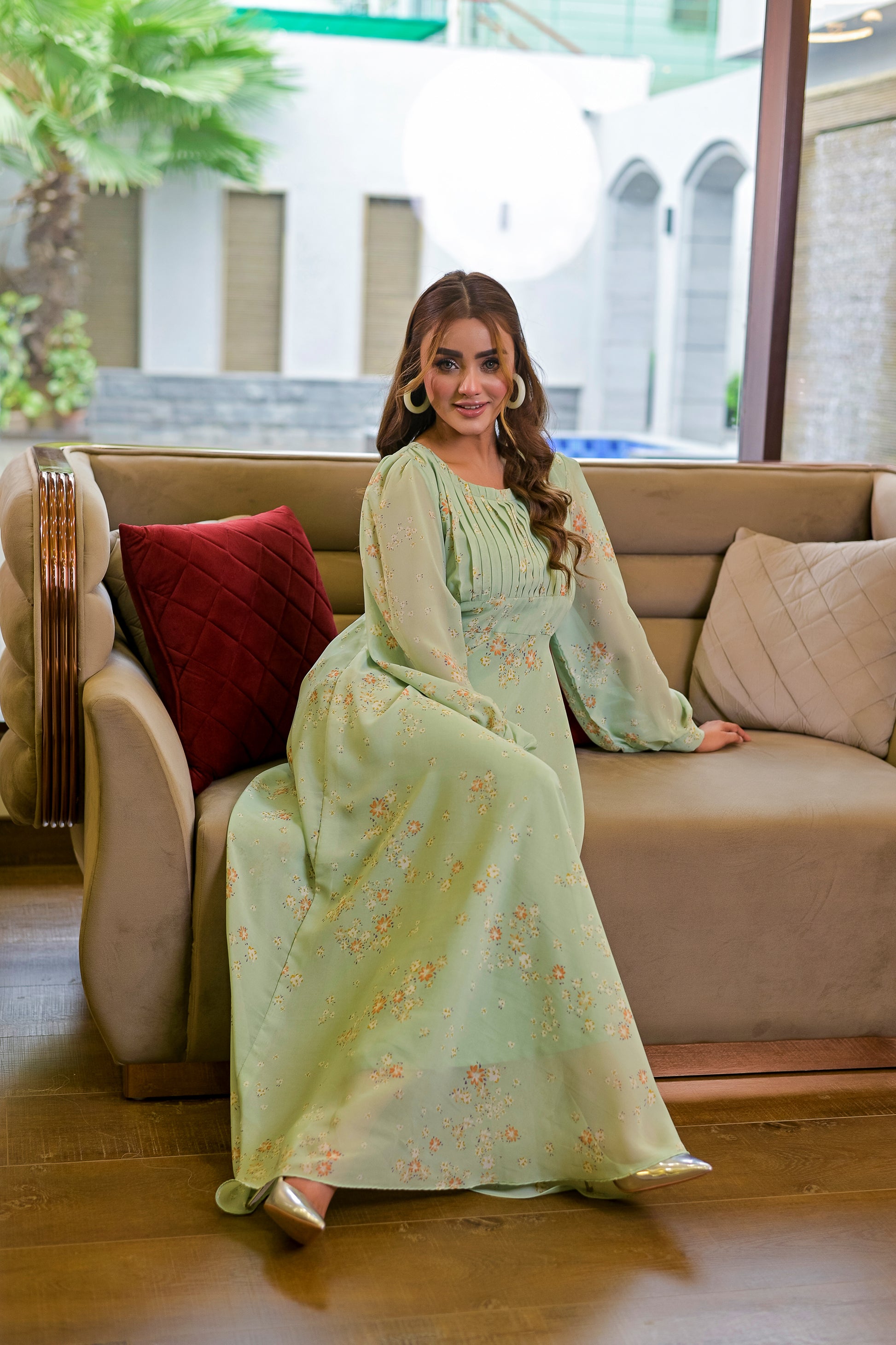 A beige chiffon maxi with soft floral detailing that reminds you of a golden meadow at dusk. Its relaxed silhouette offers both comfort and sophistication, making it easy to dress up with heels or keep casual with flats. Meadow Glow is the definition of everyday elegance.