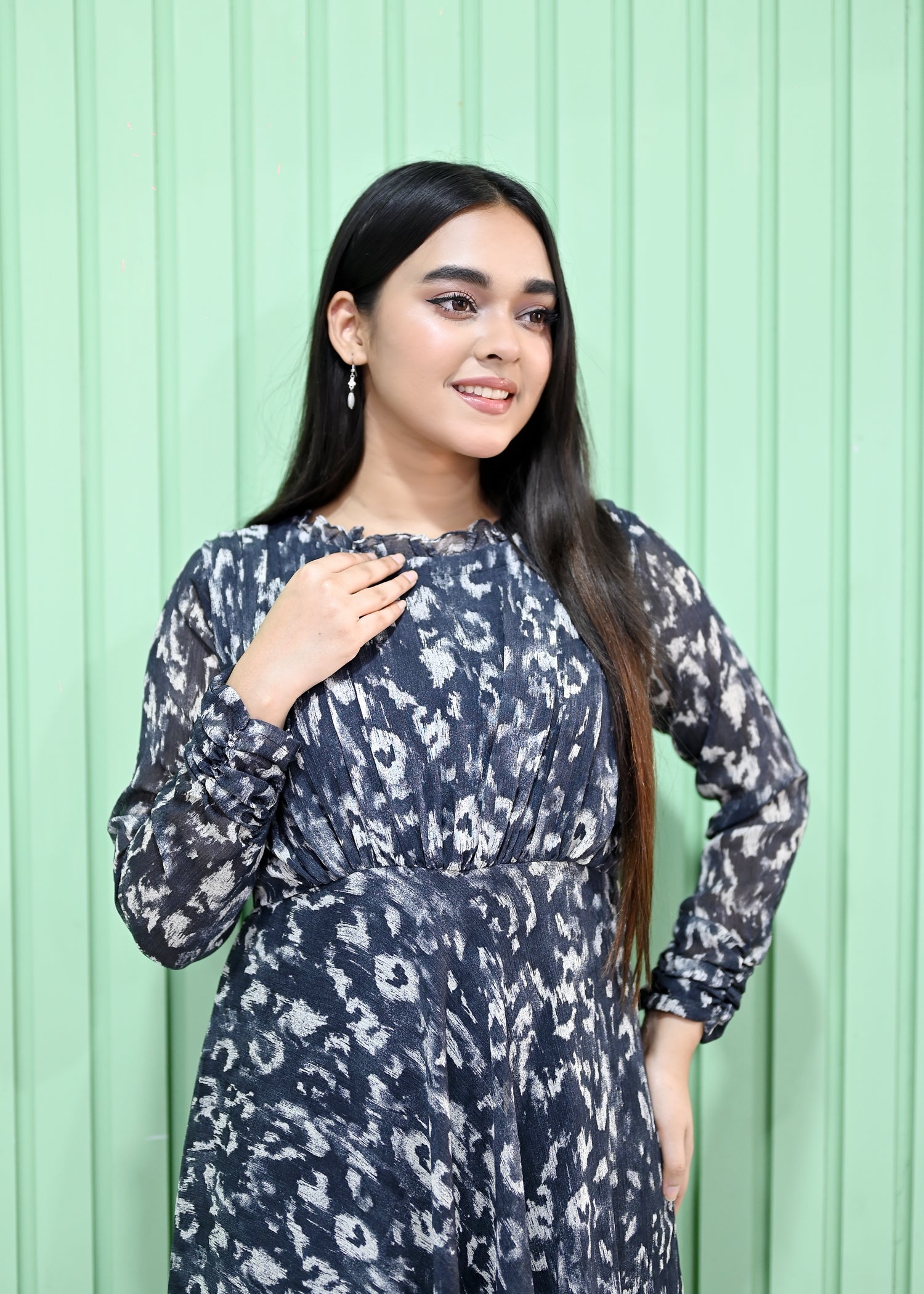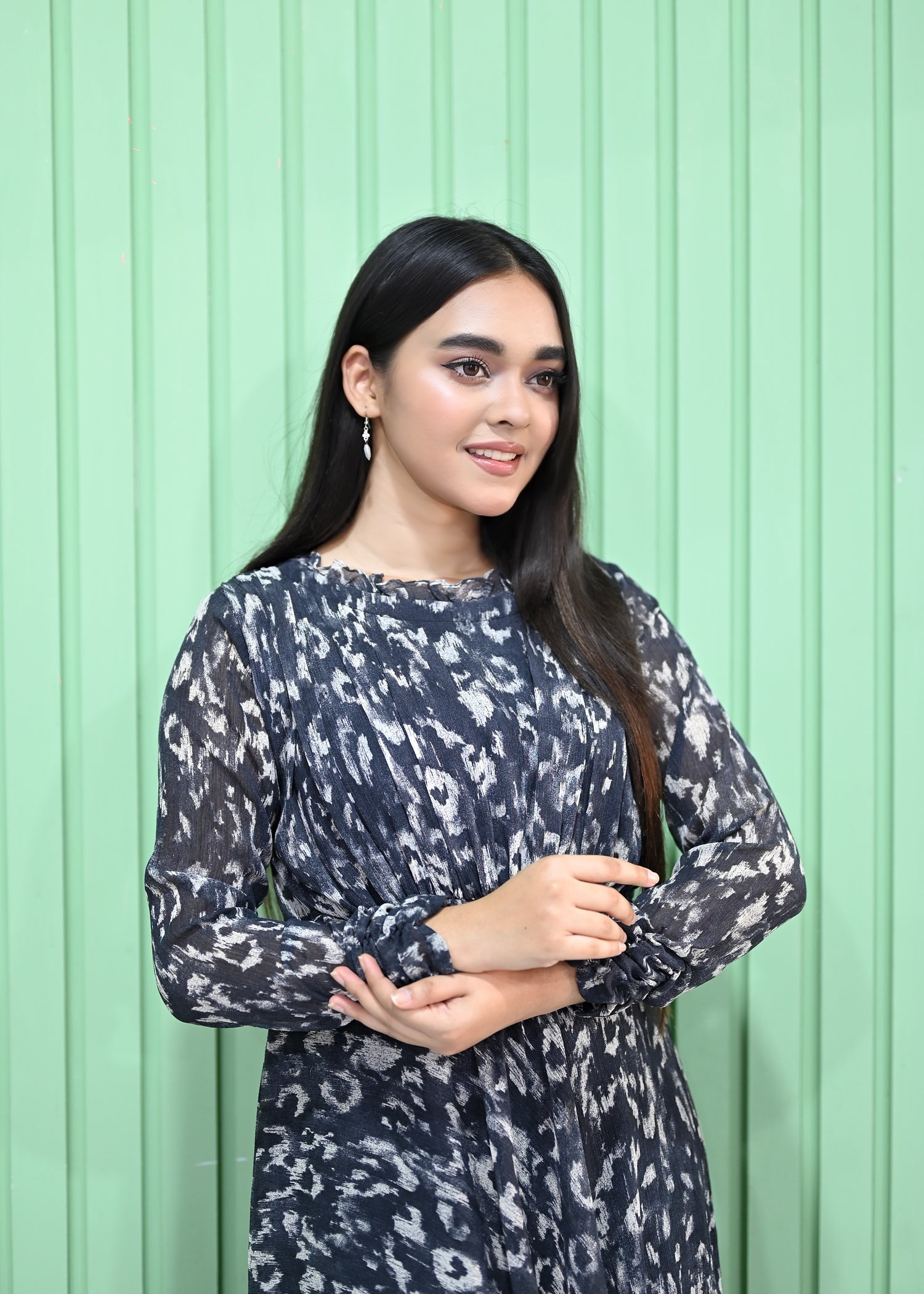 Color Palette: A deep navy base with subtle white patterns, ideal for evening outings and casual elegance.