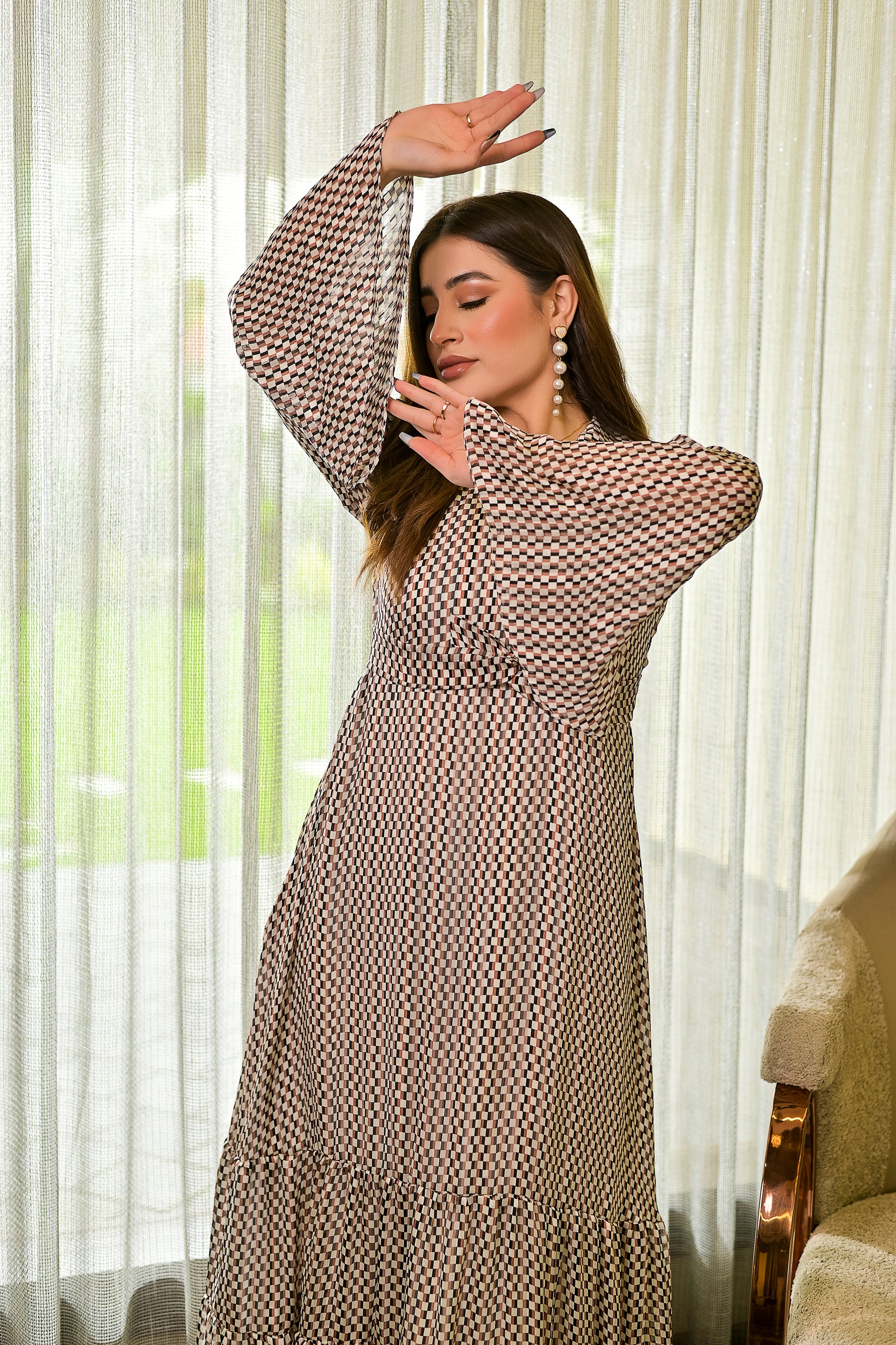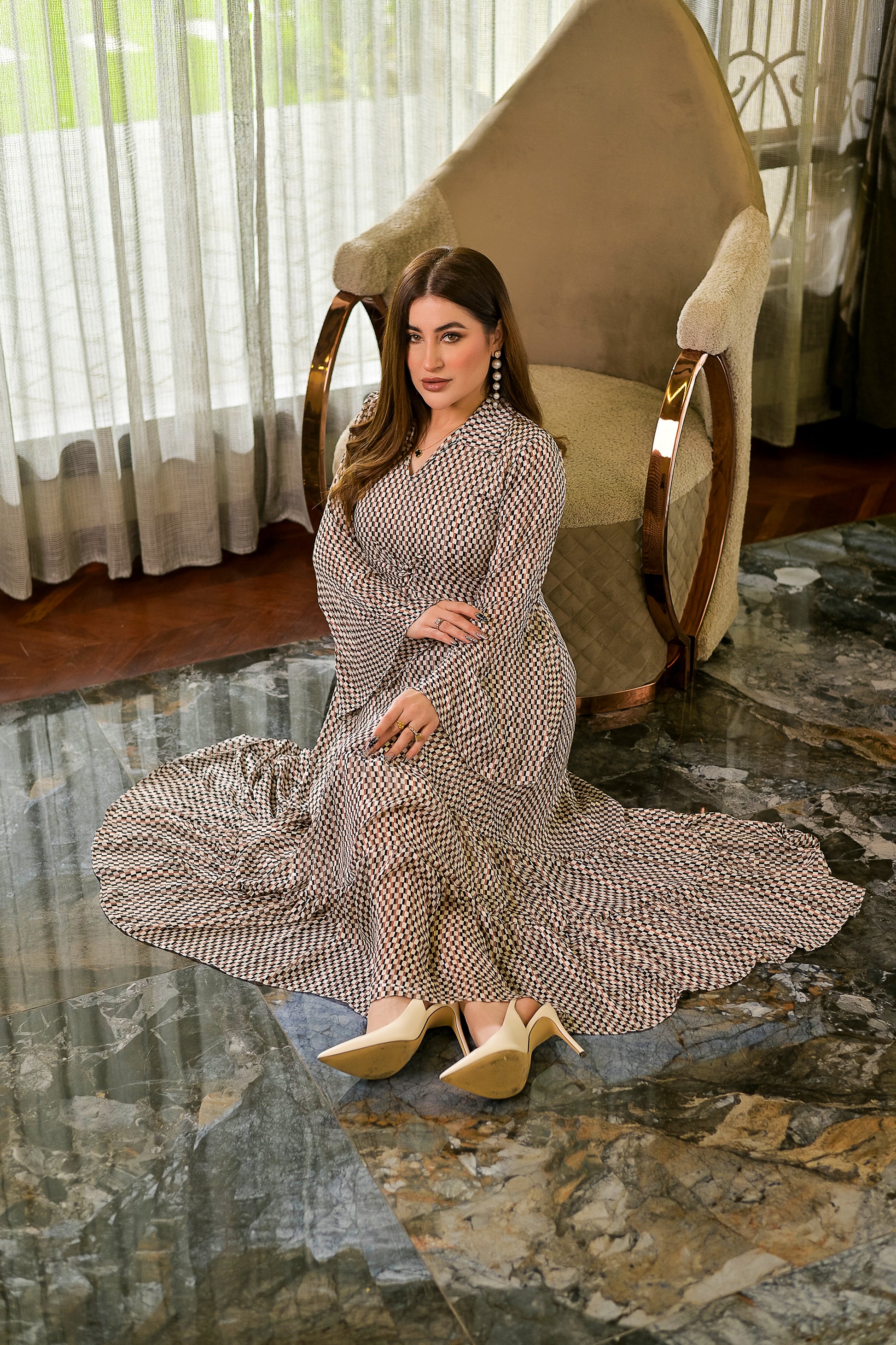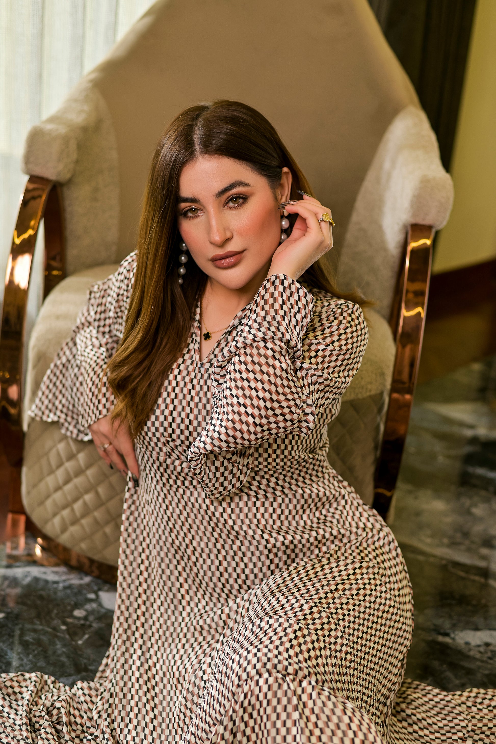 Inspired by desert sands kissed with light, this chiffon maxi in cream carries delicate floral accents. Its airy texture and easy fall drape beautifully, while the gathered waistline creates a flattering shape. Elegant and versatile, Pearl Dune transitions effortlessly from casual day looks to refined evening wear.